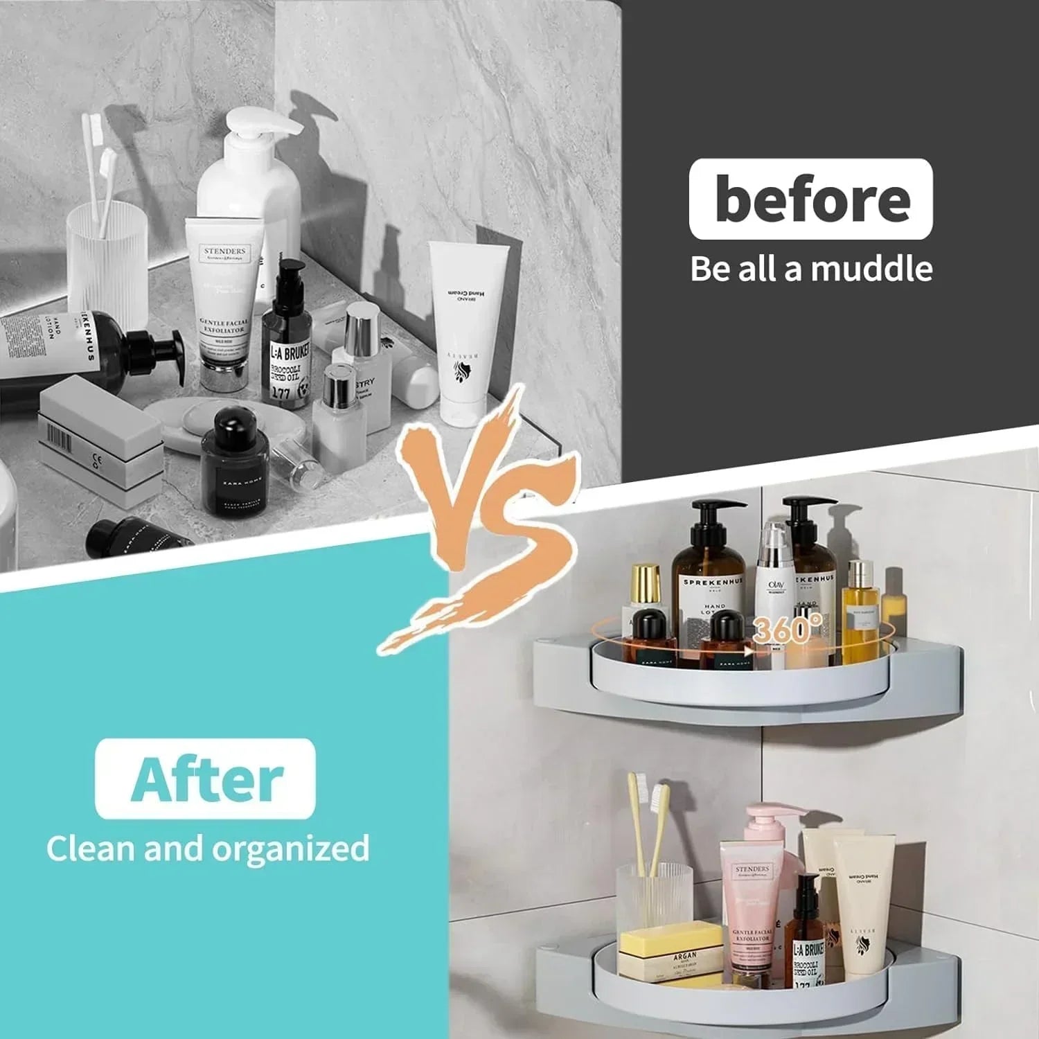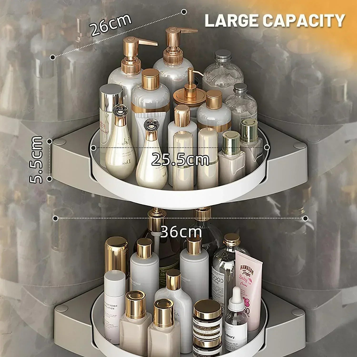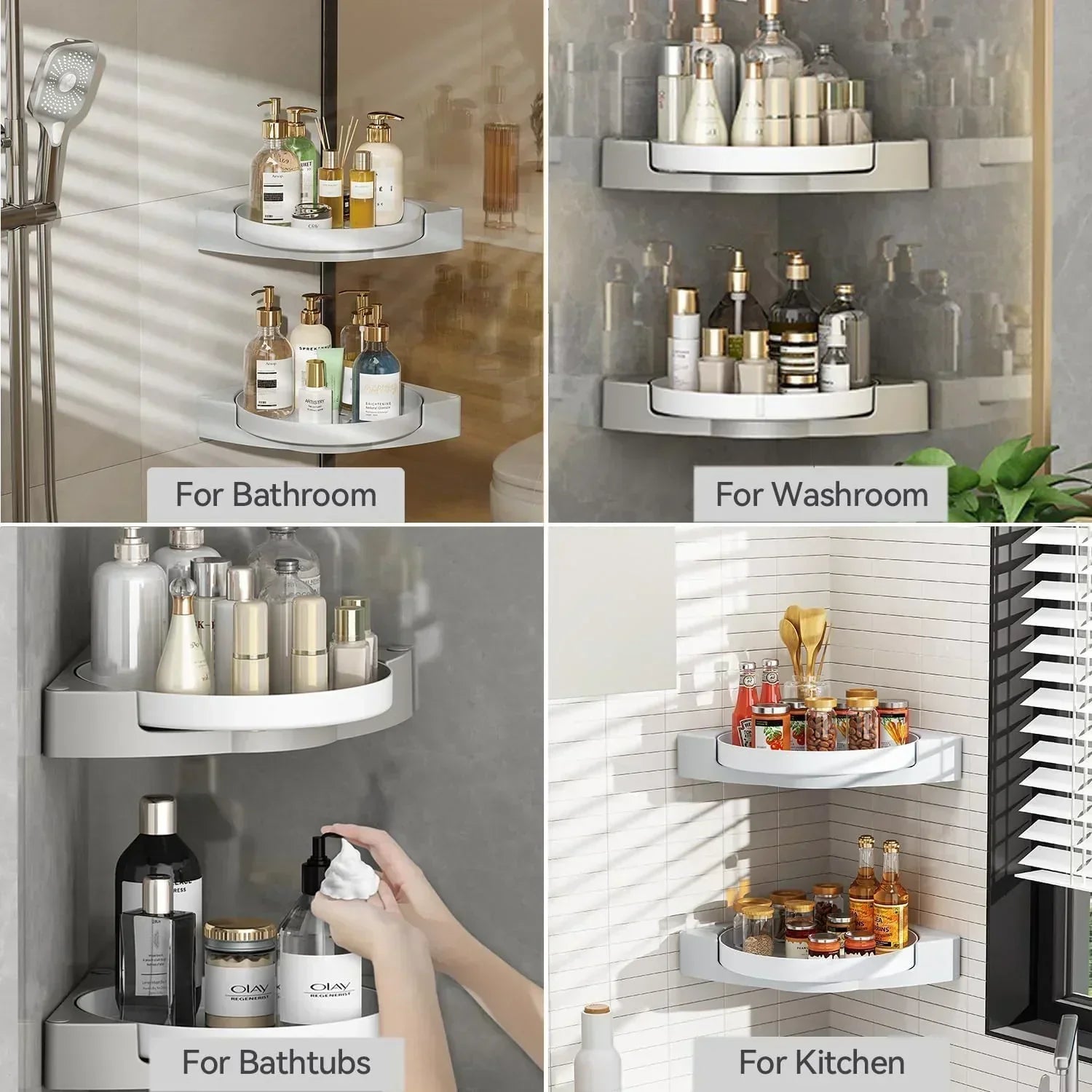 SHOWER & BATHROOM SHELF: 🚿 Serve as a convenient shower shelf holder for storing shampoo and body soap. Additionally, use it as a makeup cabinet storage rack for perfumes and cosmetics.
