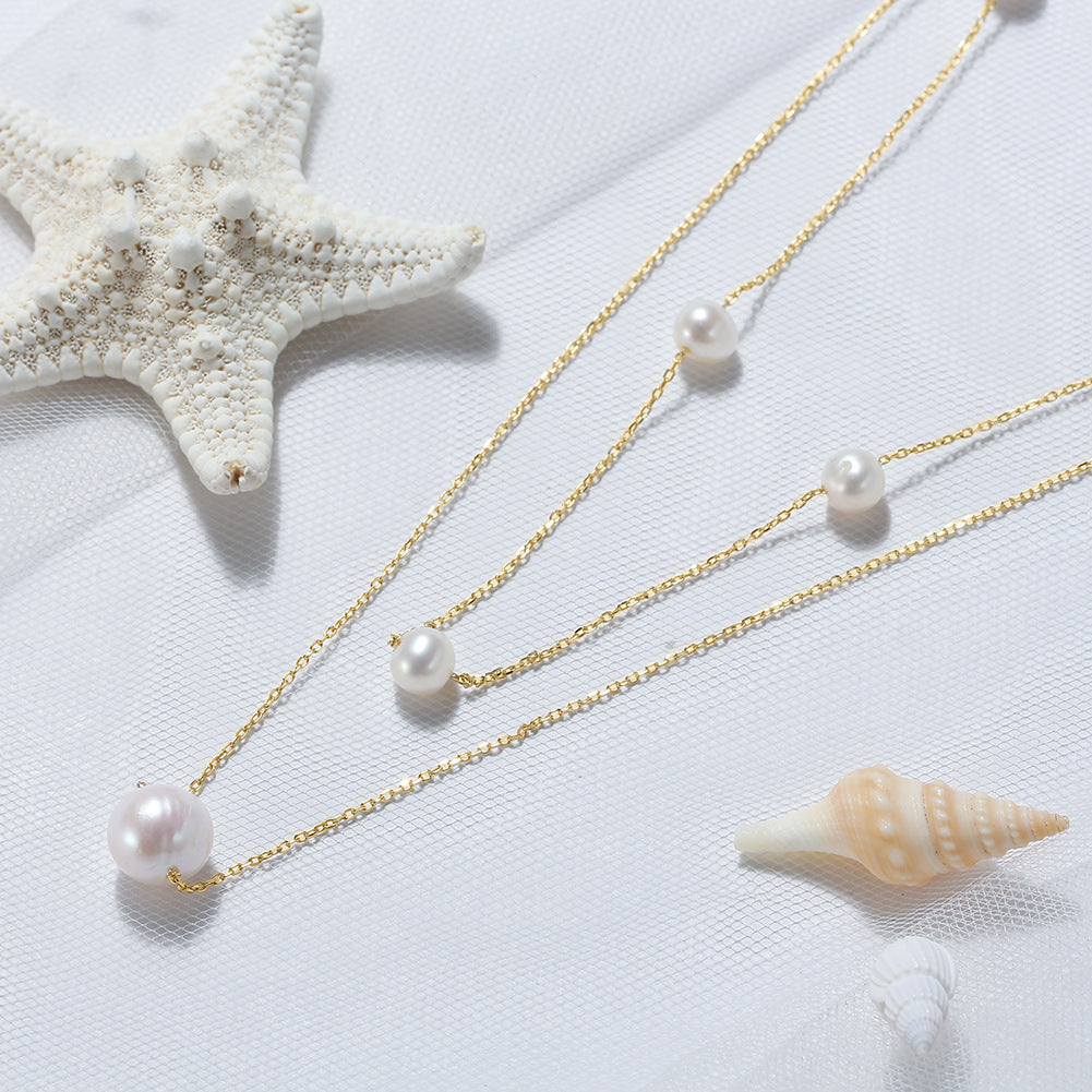 925 Sterling Silver Double-layer Necklace Baroque Pearl Pendant Special-interest Design