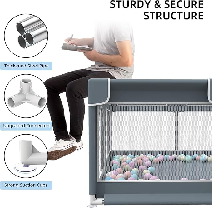 - 🧱 Sturdy Structure: Durable design prevents tipping, ensuring the playpen stays stable at all times.