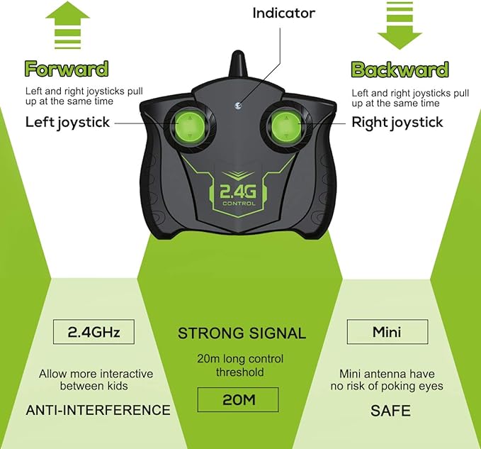 📡 Long Distance & Anti-Interference Transmitter: Equipped with a 2.4GHz wireless remote control, this racing car allows kids to compete with friends without signal interference. The remote control has a maximum distance of about 65ft, providing ample space for thrilling races and maneuvers.